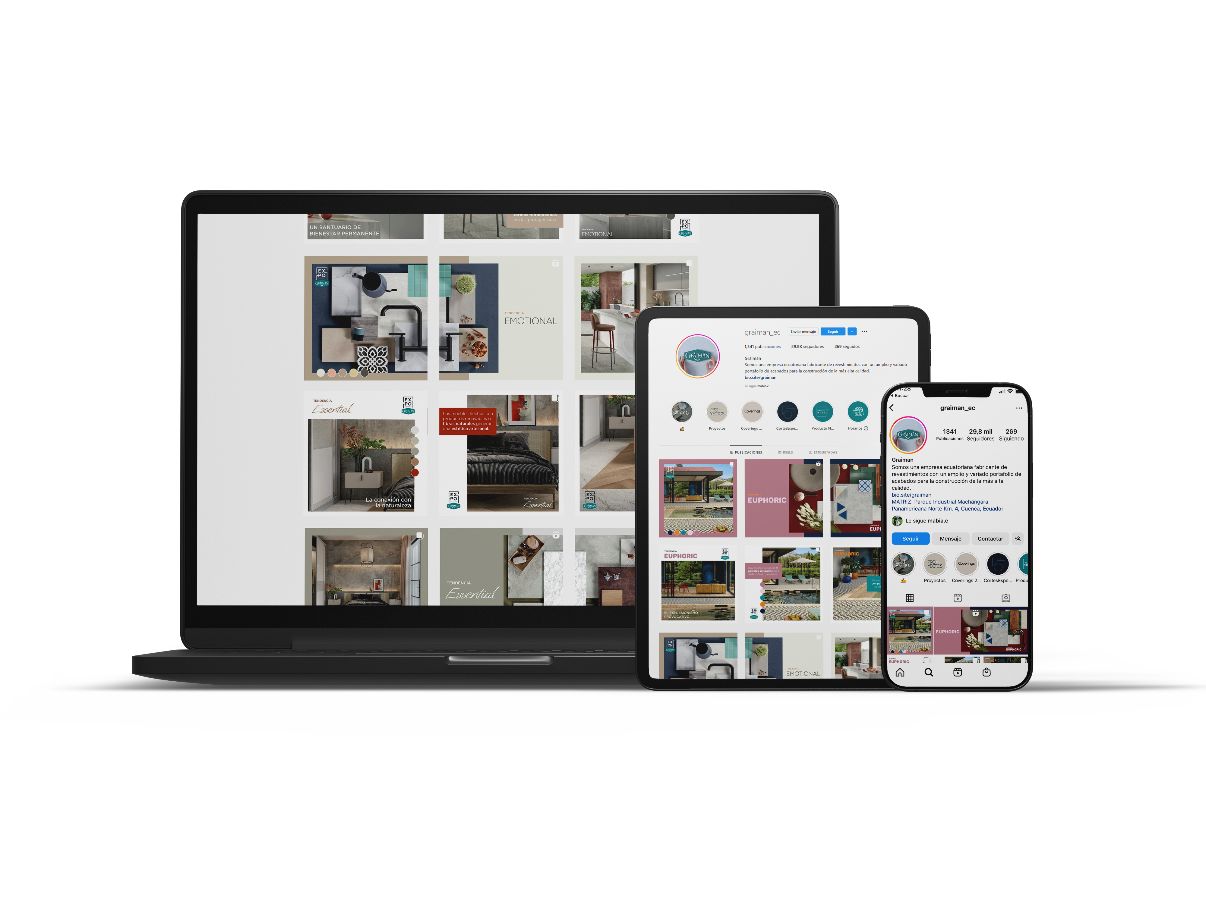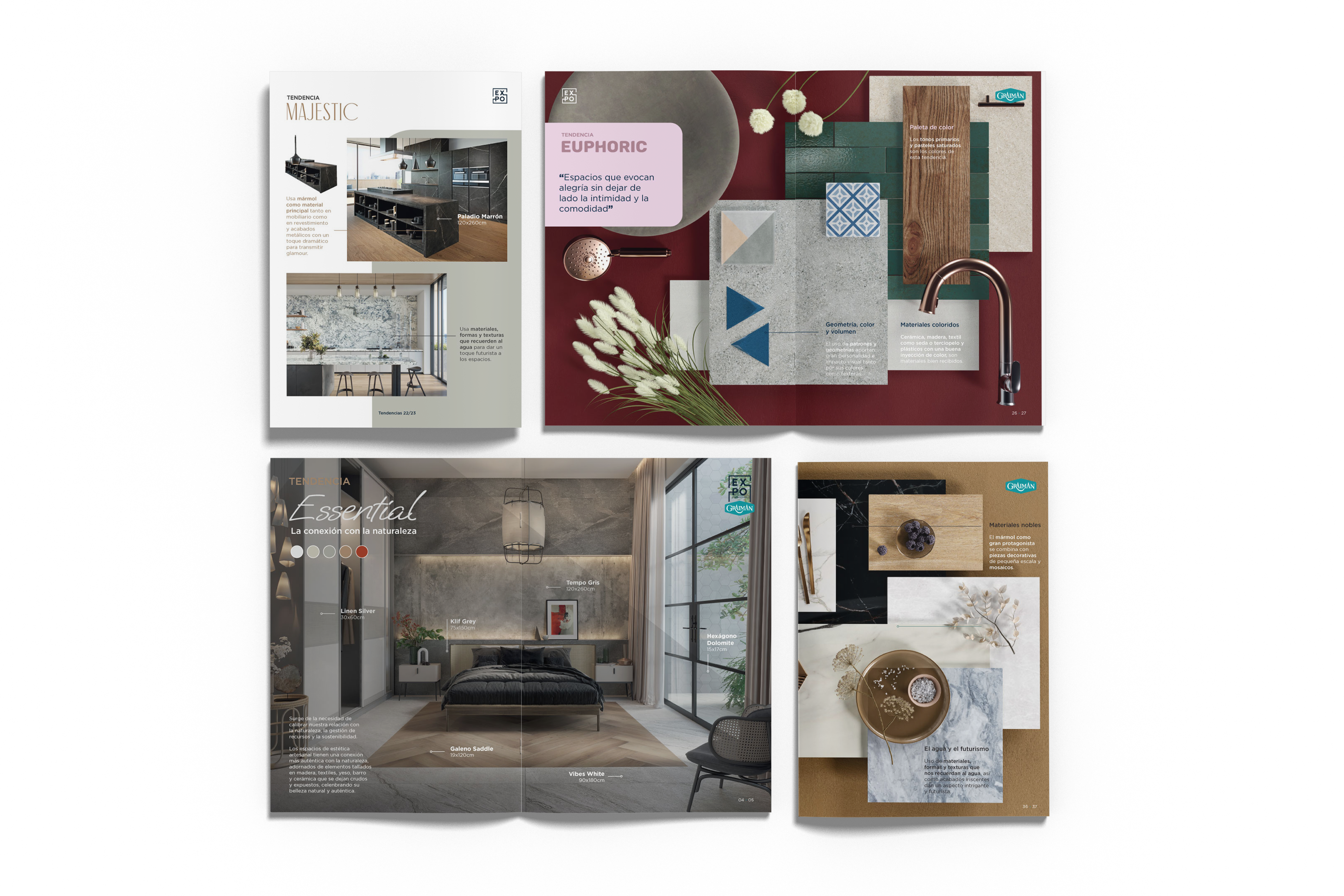 Diseñamos y produjimos una revista que sirve al cliente final como herramienta de inspiración. En ella se detallan y explican cada uno de las 4 tendencias decorativas detectadas en el estudio, y poniendo en valor el producto Graiman gracias a los ambientes desarrollados.