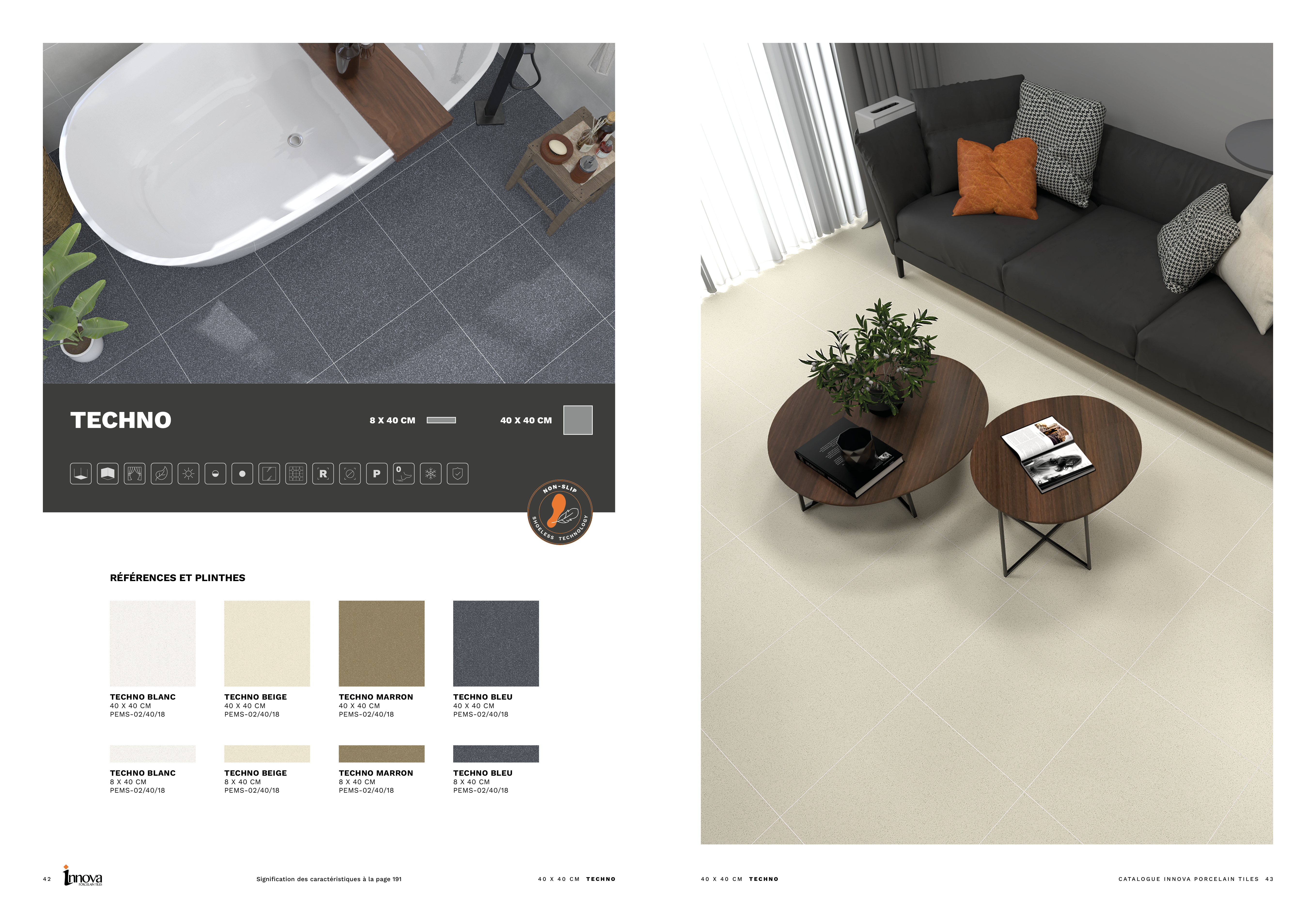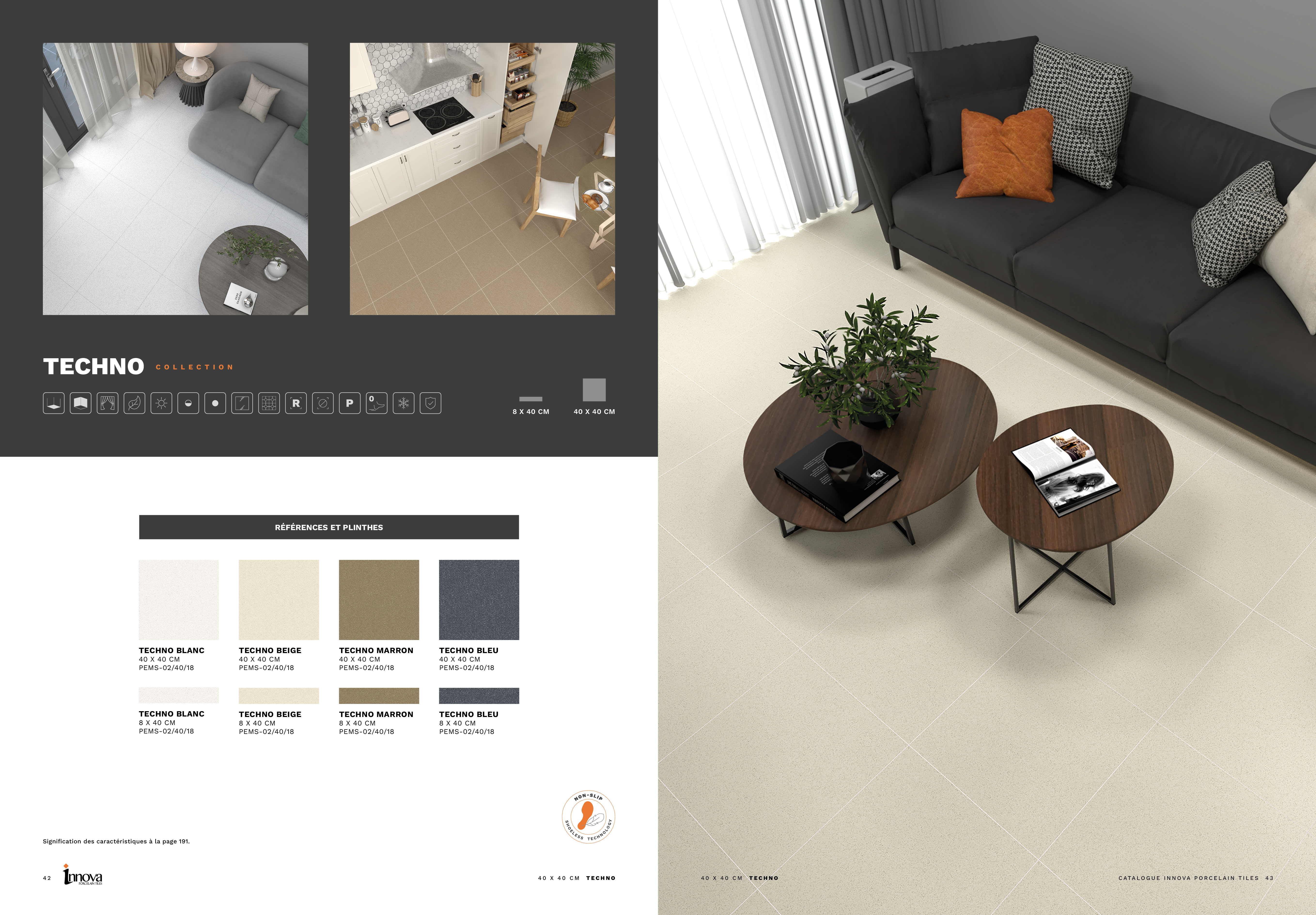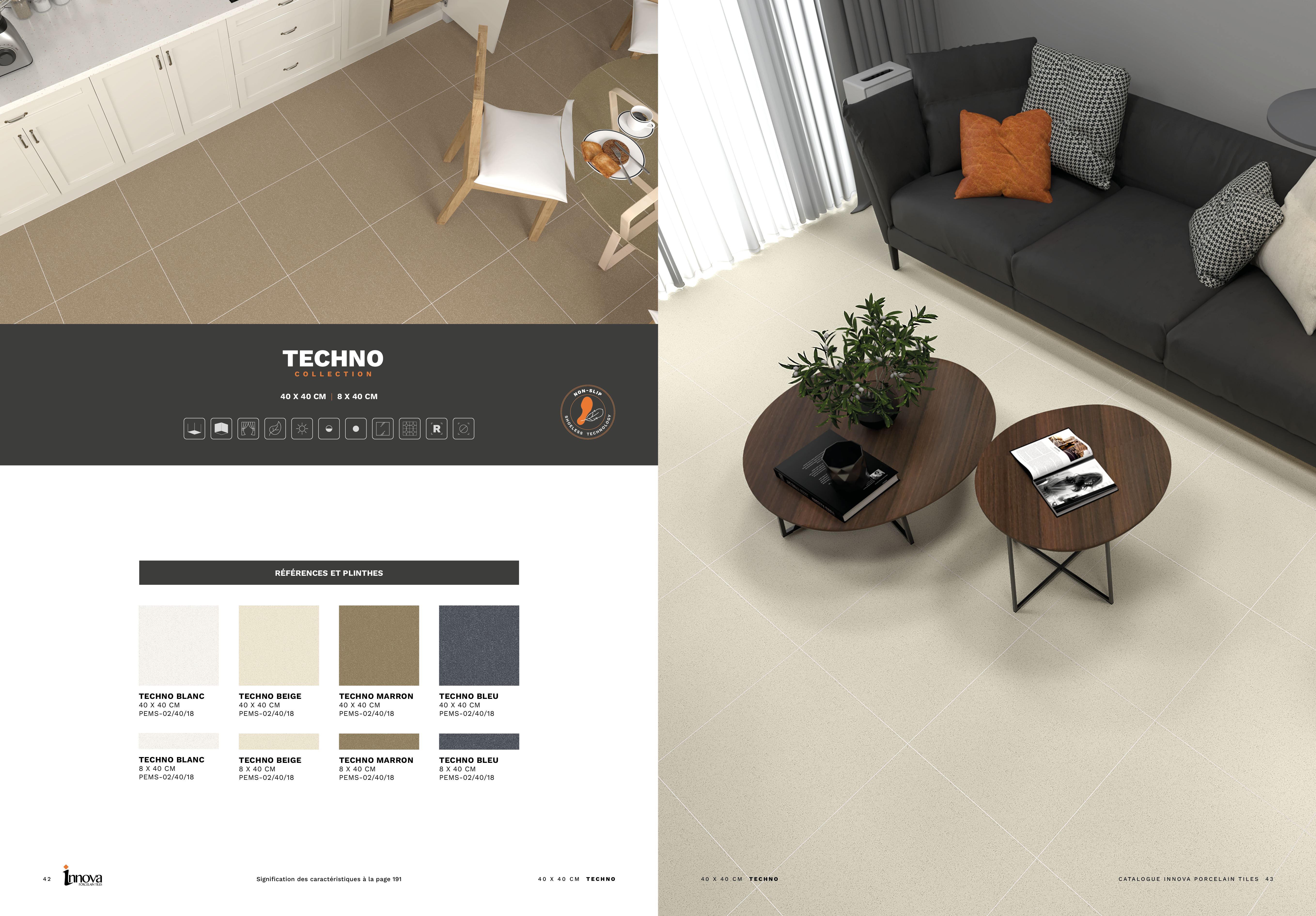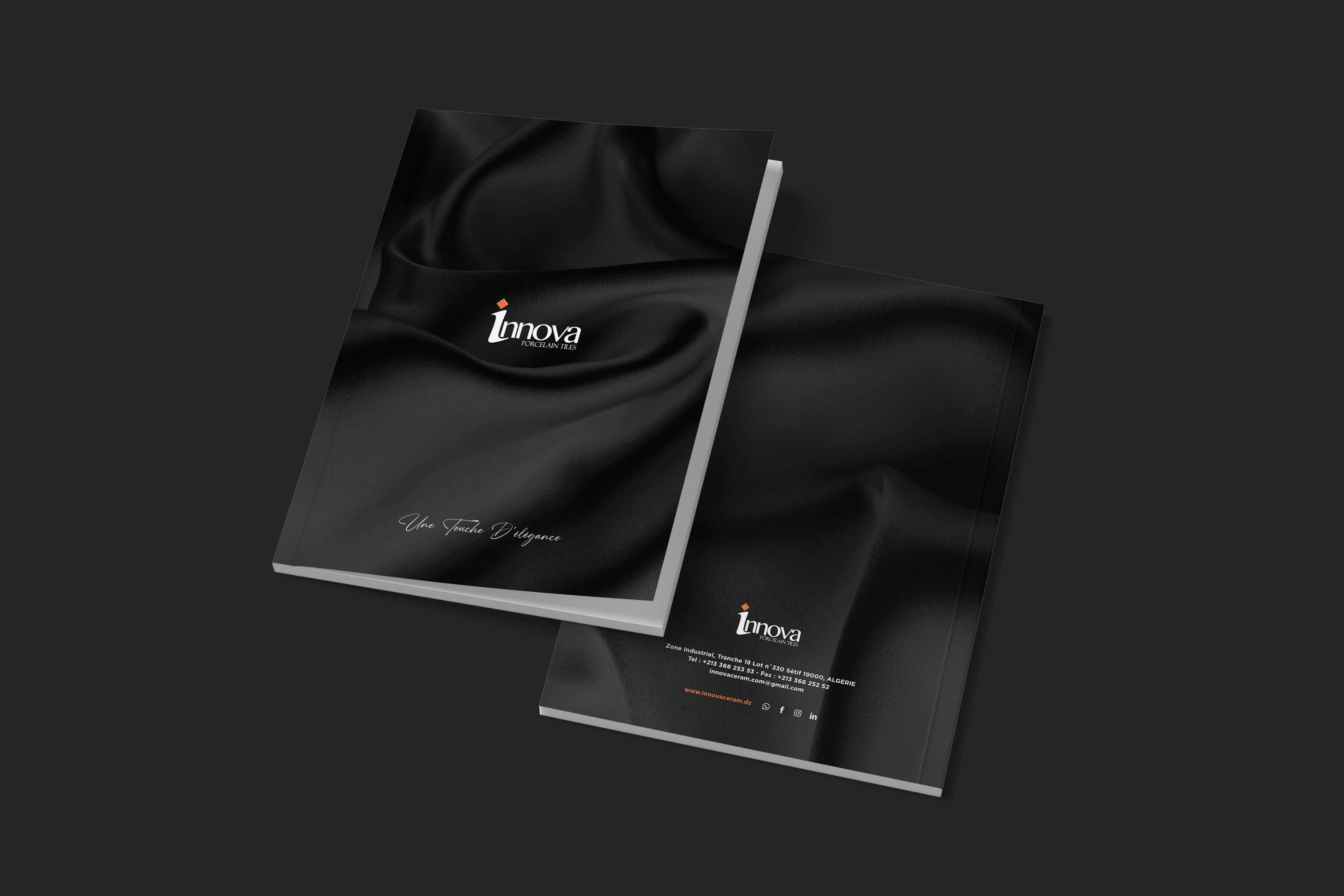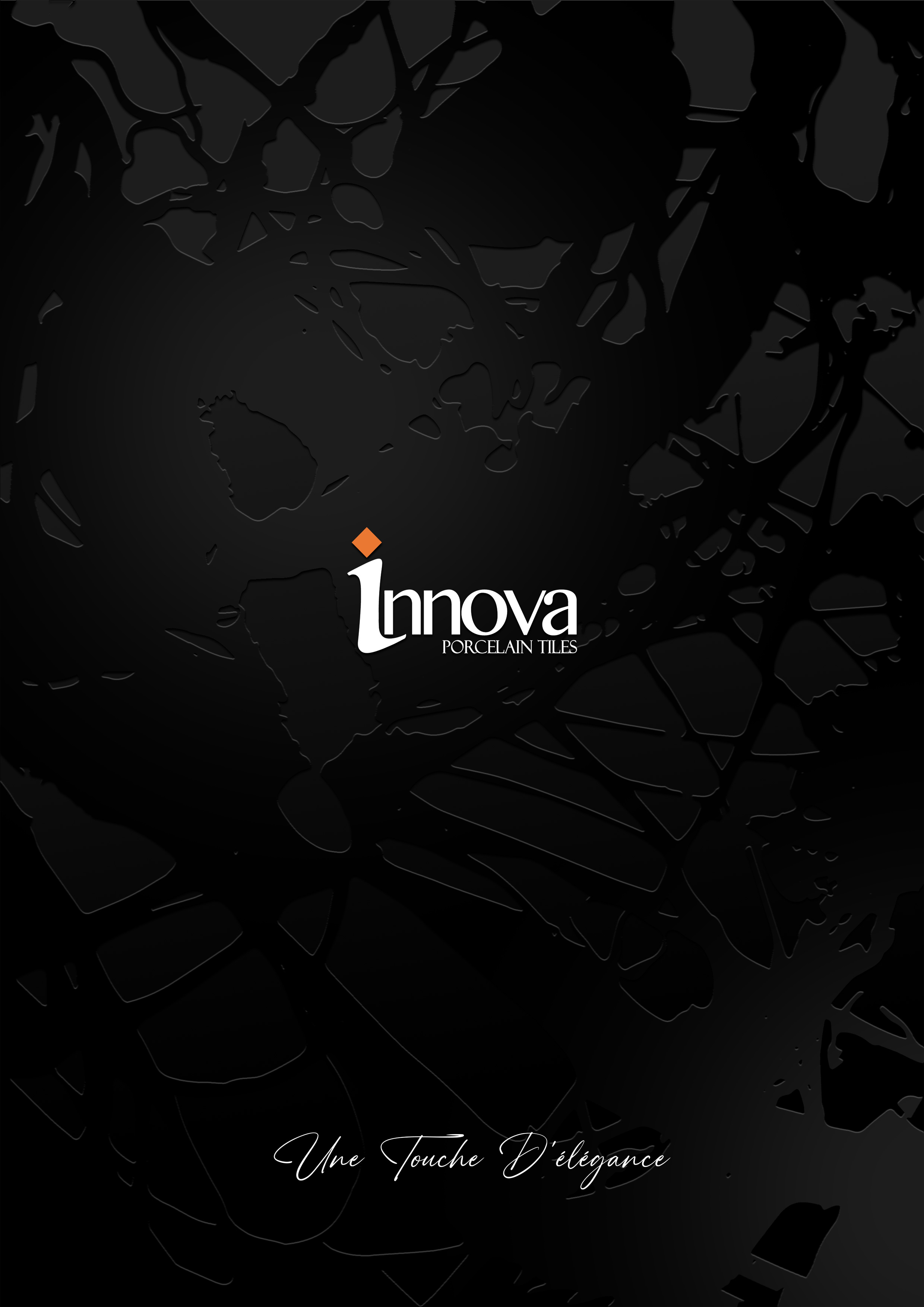Logotipo de INNOVA en relieve. El fondo está dividido en dos partes: el dibujo y el fondo. El dibujo irá en acabado brillo y el fondo en acabado mate, creando un contraste sutil y elegante solo apreciable al mover el catálogo y reflejando la luz.