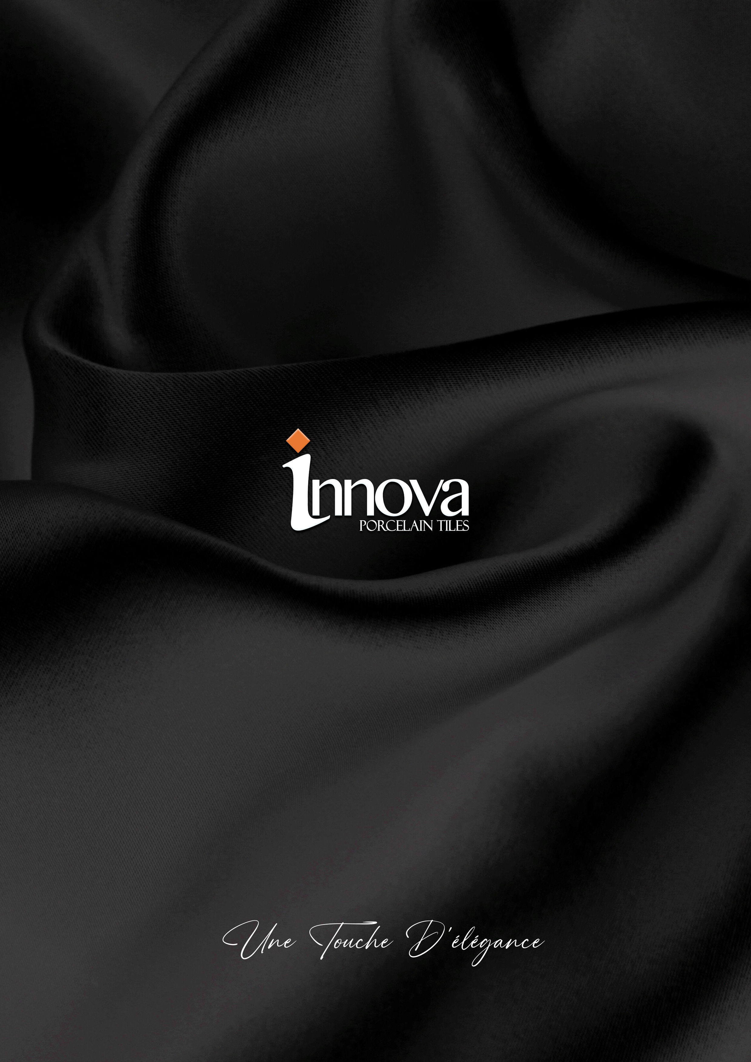 Logotipo de INNOVA en relieve y en brillo. El fondo es una imagen de una tela negra, creando una textura delicada y una serie de movimientos que nos transmiten elegancia.