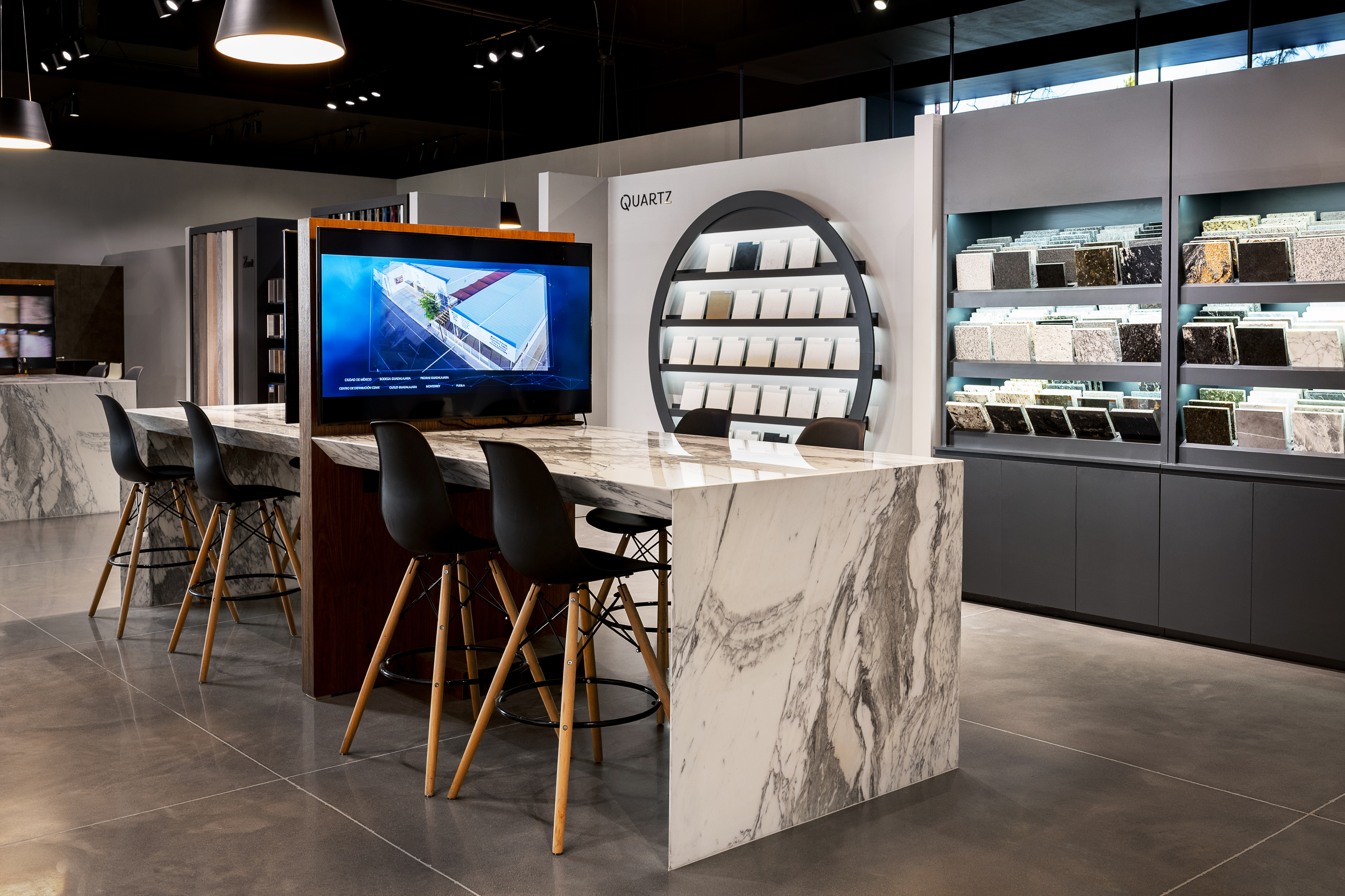 Grupo Tenerife, el principal importador y distribuidor de piedras naturales y materiales decorativos de México, nos encargo la concepción y el desarrollo del proyecto técnico de su nuevo showroom en el centro comercial Punto Sur en Guadalajara, México.