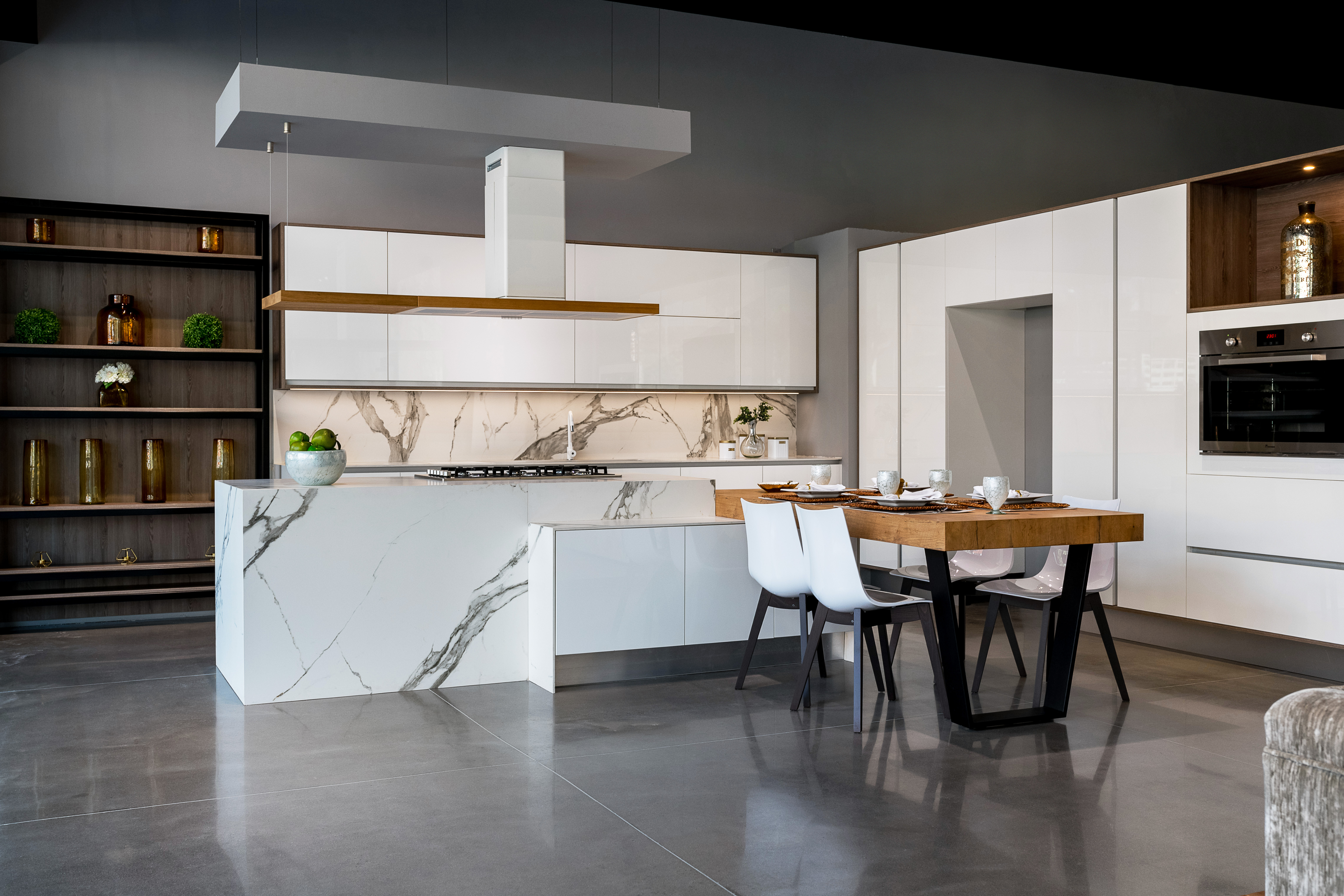 Con una superficie de más de 1.000 m2 tuvimos que tener en cuenta los condicionantes técnicos y normativas propias del centro comercial pero que no supusieron obstáculo para poder diseñar una experiencia de compra a la altura de la nobleza y variedad de los materiales expuestos.