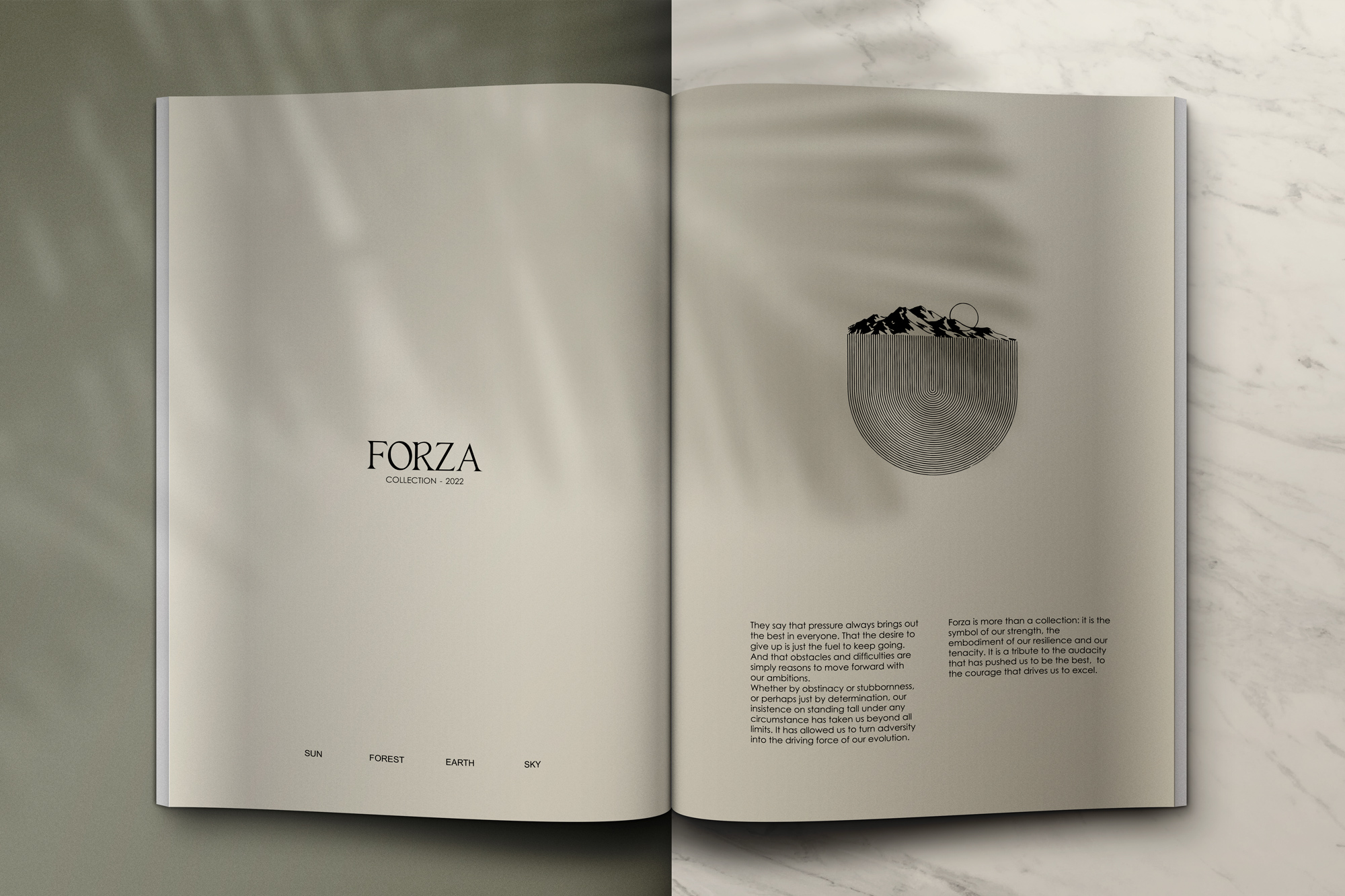 FORZA es el resumen de la fortaleza de la empresa, puesta en valor tras el difícil periodo de la pandemia y para la cual hemos desarrollado un discurso basado en la energía de los elementos naturales, otorgando un valor añadido a cada uno de los productos.