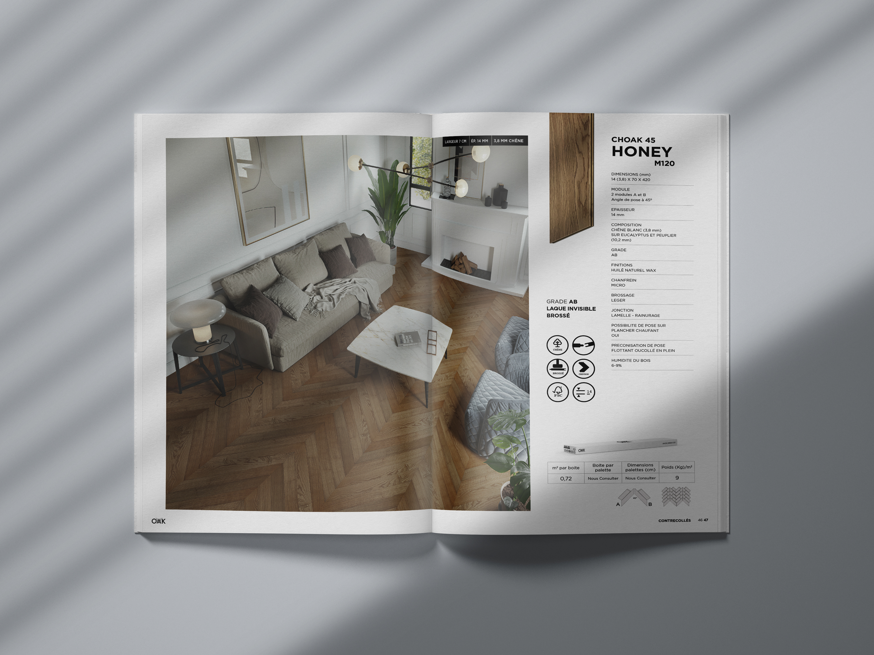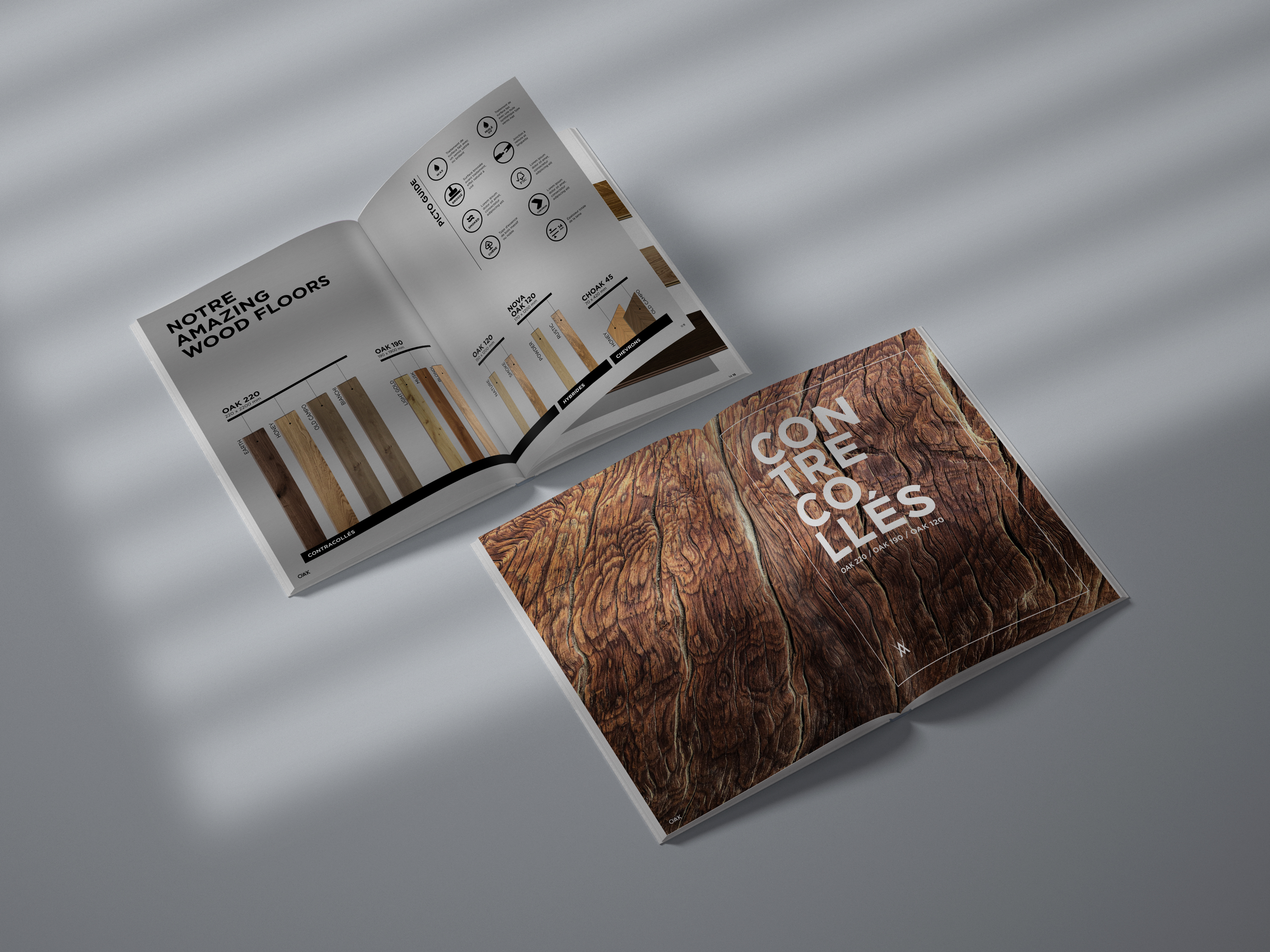 OAK es una empresa francesa productora de suelos de madera totalmente naturales. En esta ocasión recibimos un encargo global: rediseñar toda su imagen corporativa, biblioteca de ambientes, sitio web y catálogo general.
