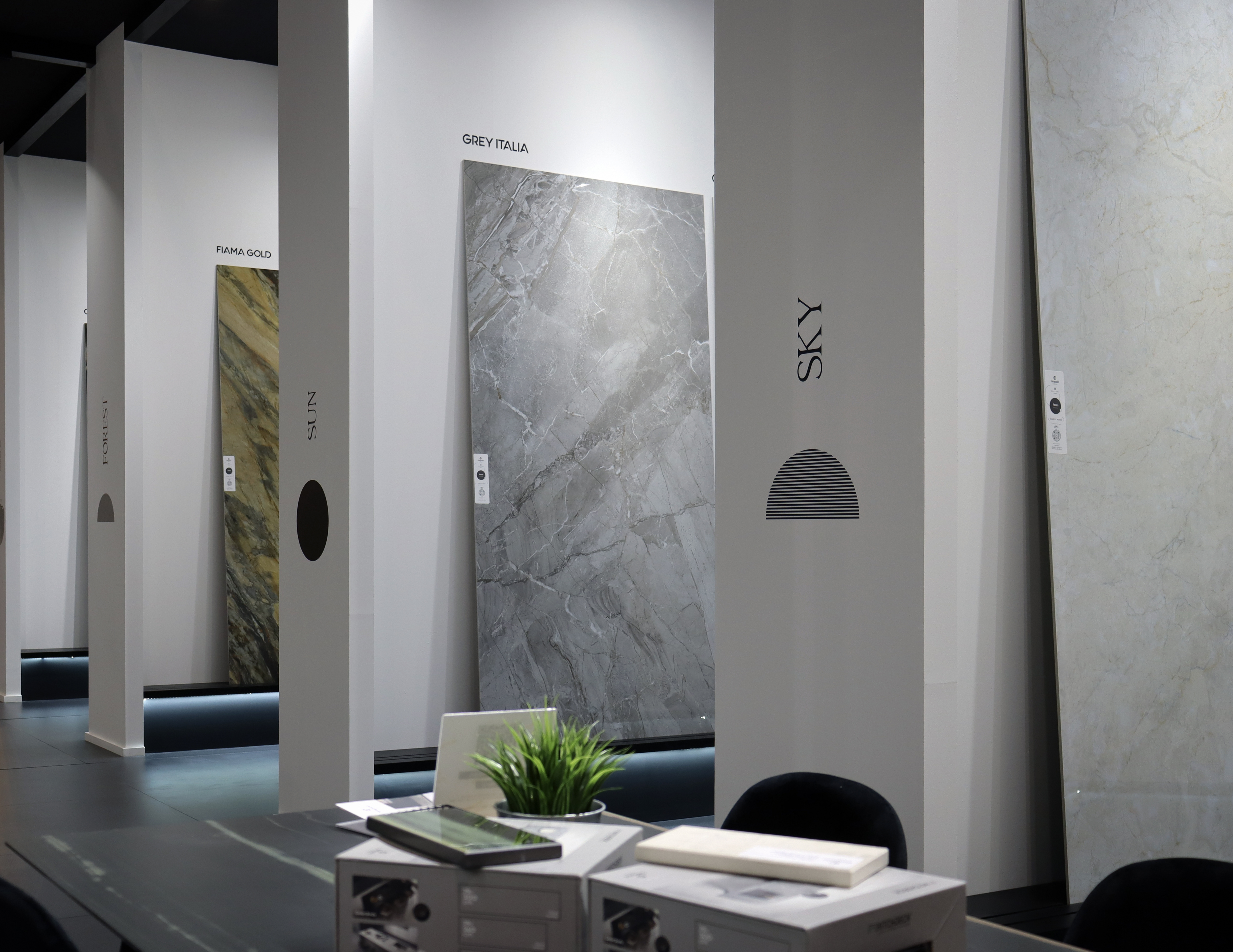 El reto ha sido doble: Por un lado se trataba de su primera presencia en Coverings, por lo que uno de los objetivos principales ha sido generar una experiencia de marca acorde con el posicionamiento que se pretende. Por otro lado, al ser un fabricante de productos de gran formato, hemos diseñado un recorrido funcional teniendo en cuenta los condicionantes de este tipo de formatos.