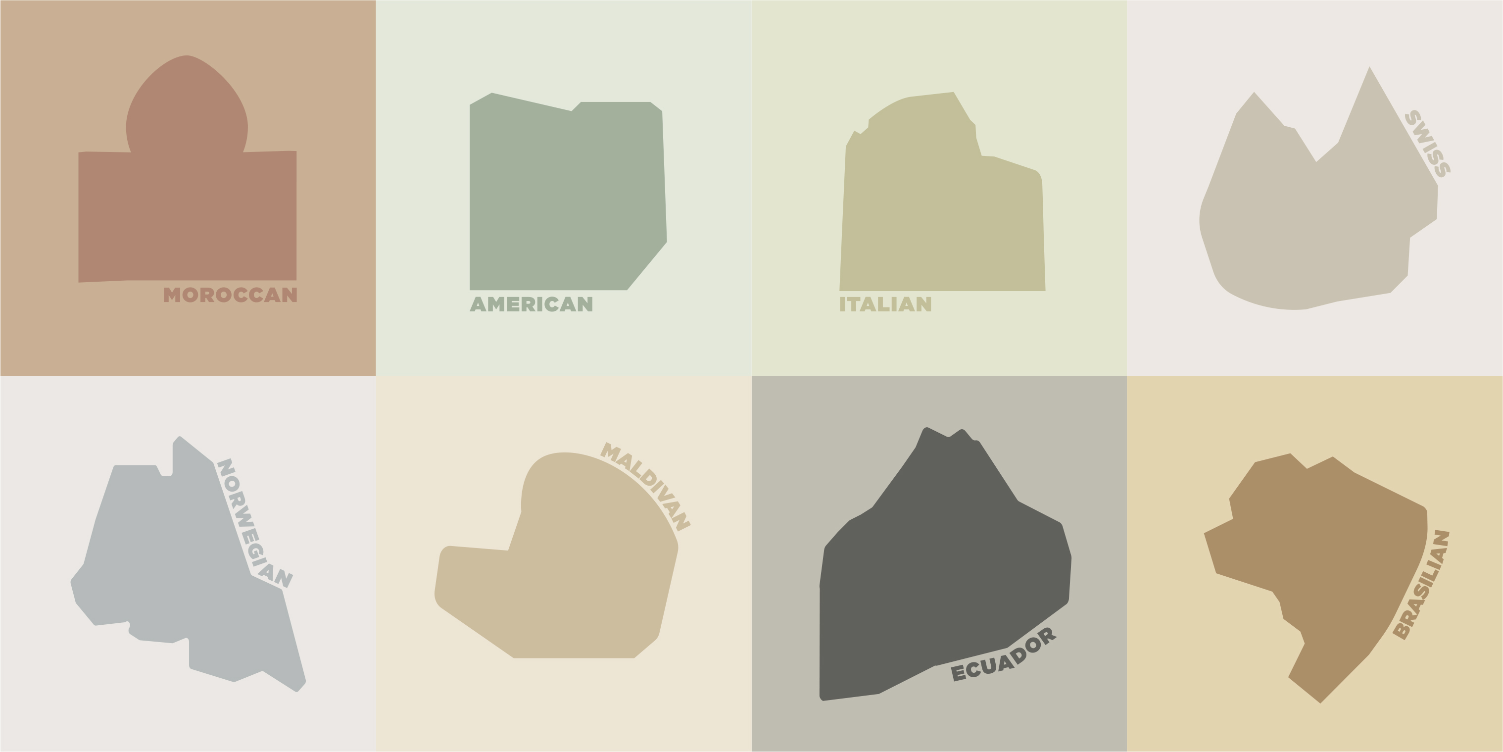 Eight countries that are very diverse in architecture, materials and decoration were selected. For the campaign, three types of colour palettes were used to personalise the countries, emulating a swimming pool, patio or outdoor area.