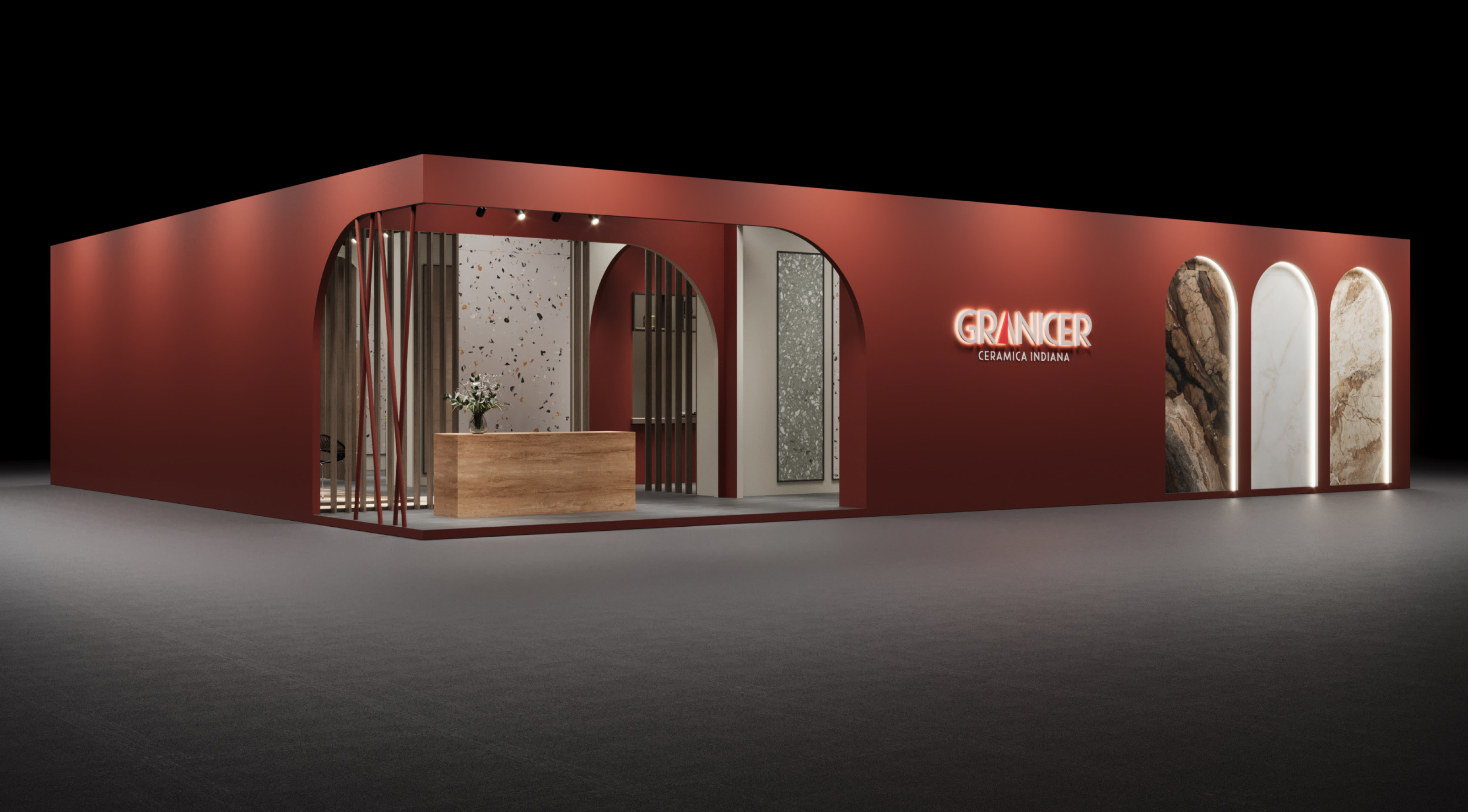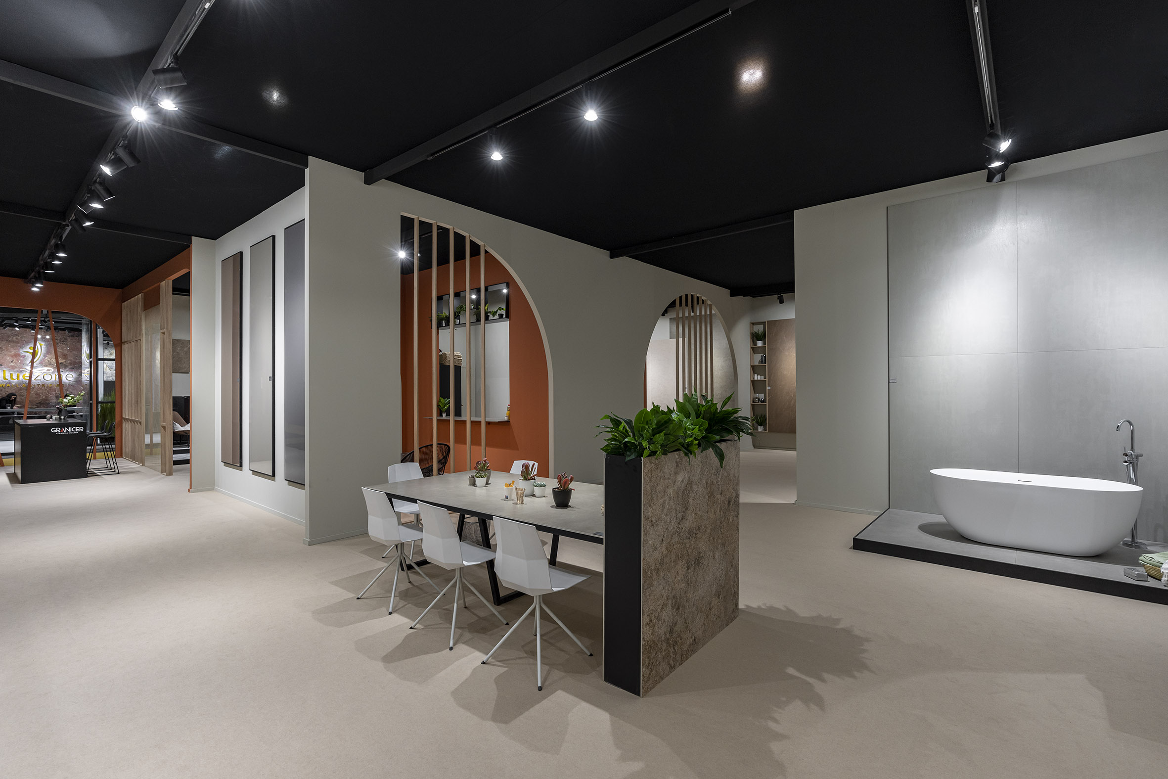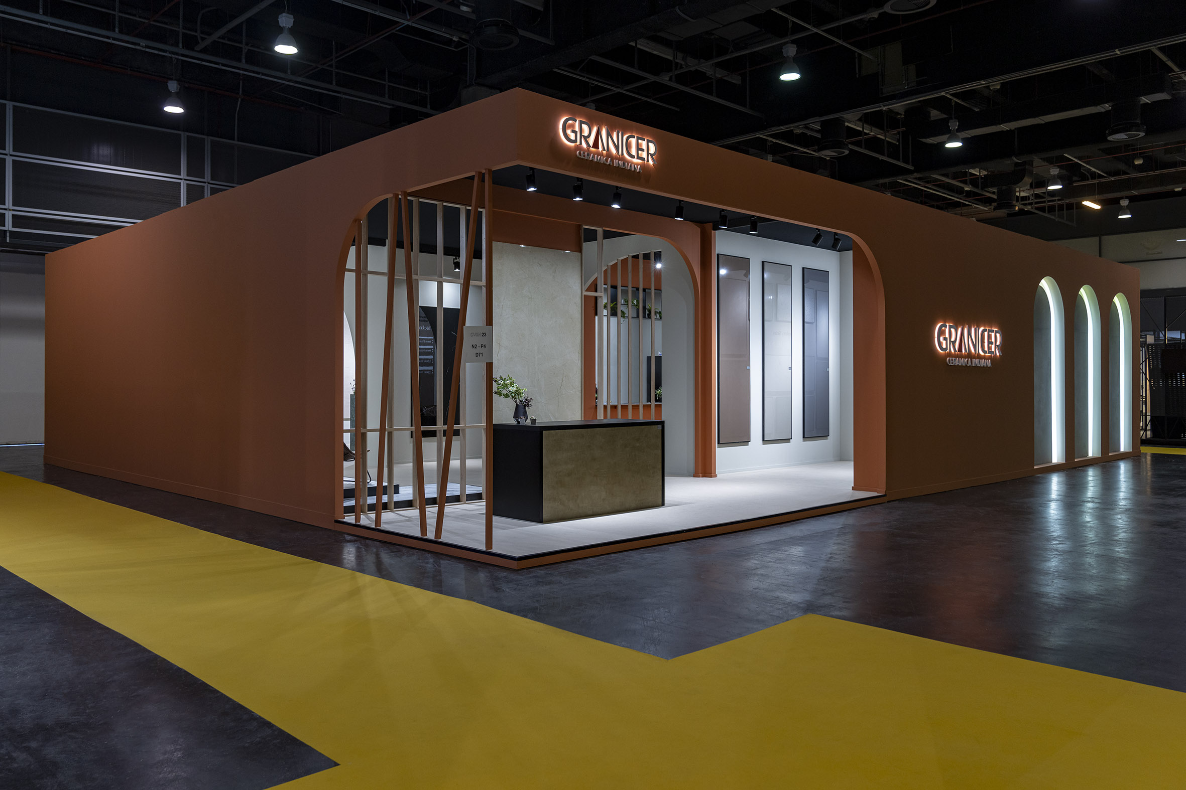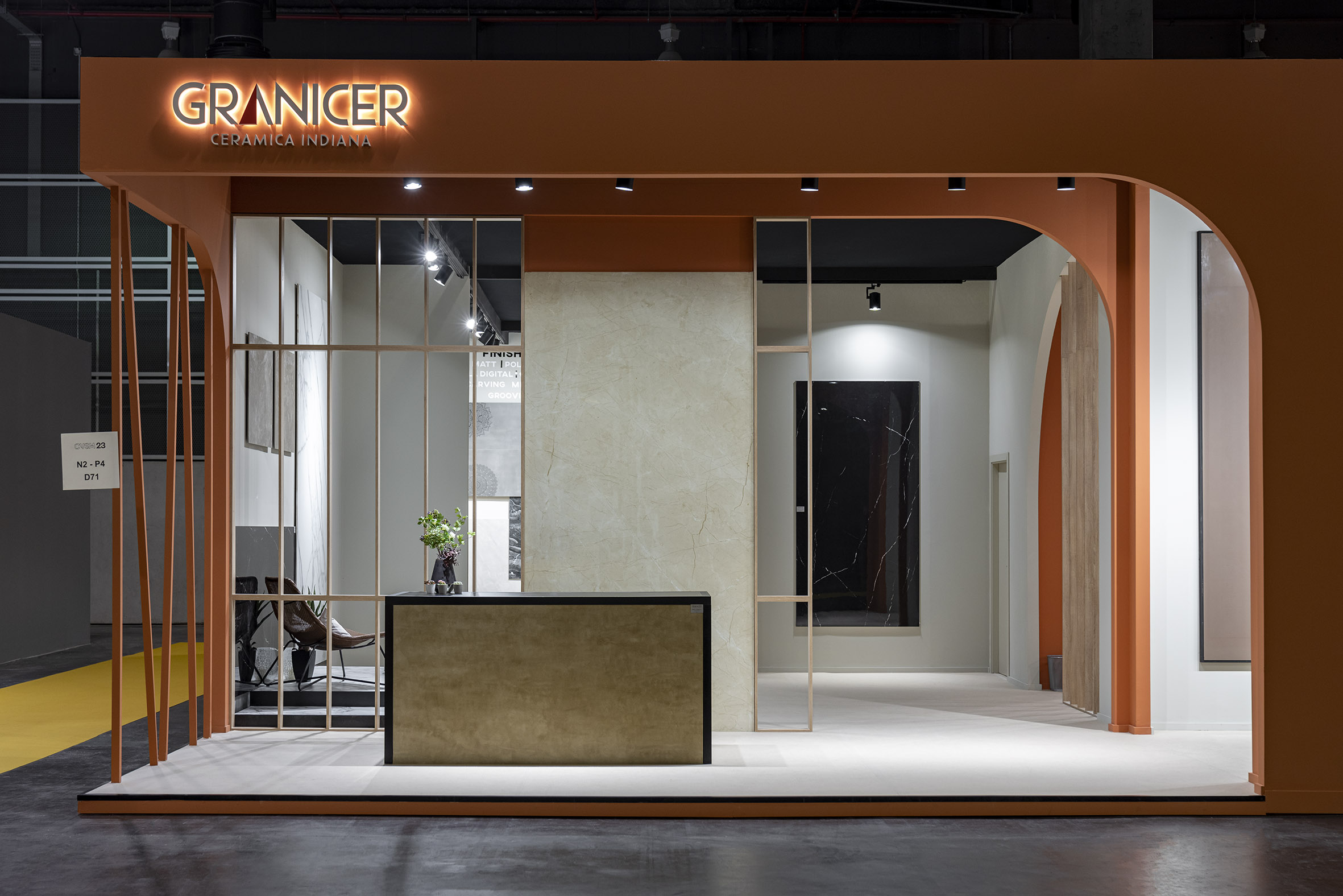 Un stand llamativo y elegante en el que la cerámica es el elemento más destacado. Sus líneas de producto incluyen baldosas para suelos, paredes y espacios exteriores, así como colecciones especiales para uso comercial e industrial.