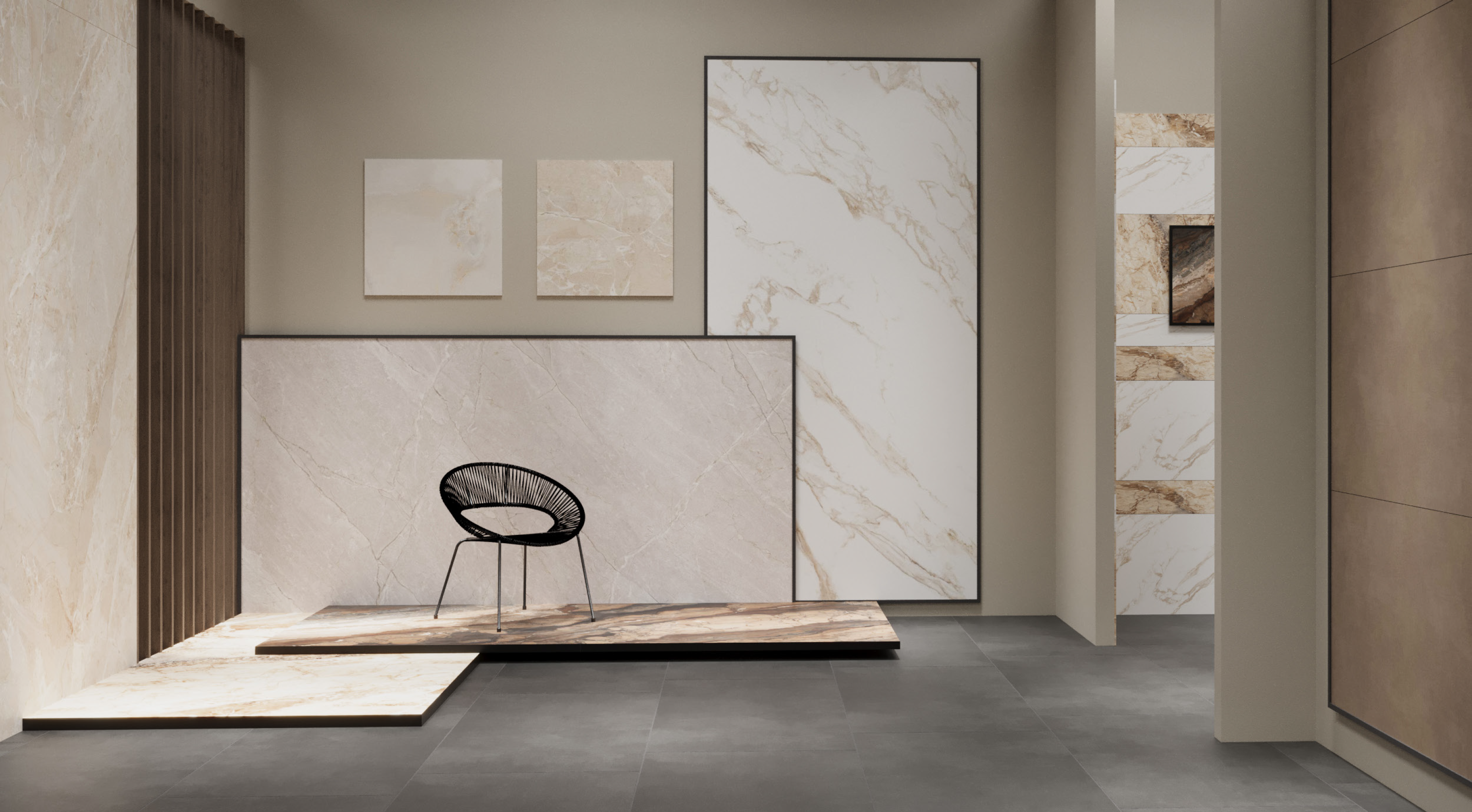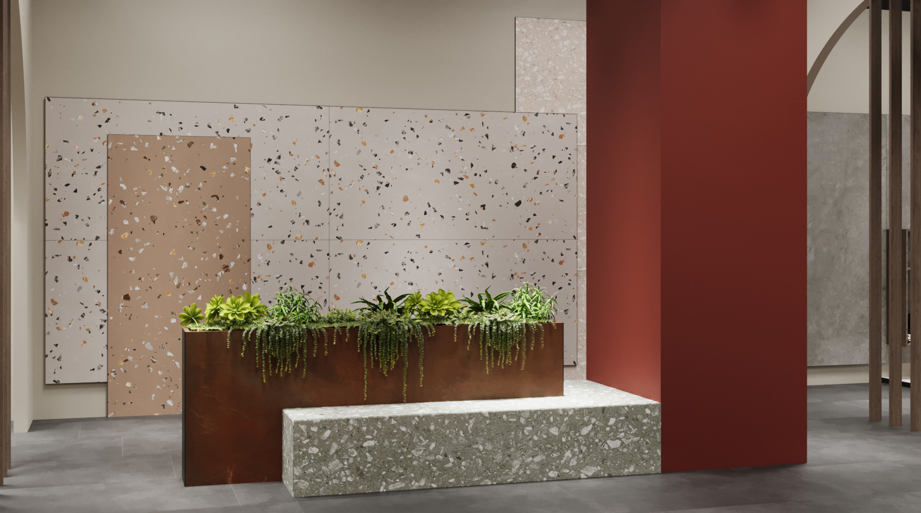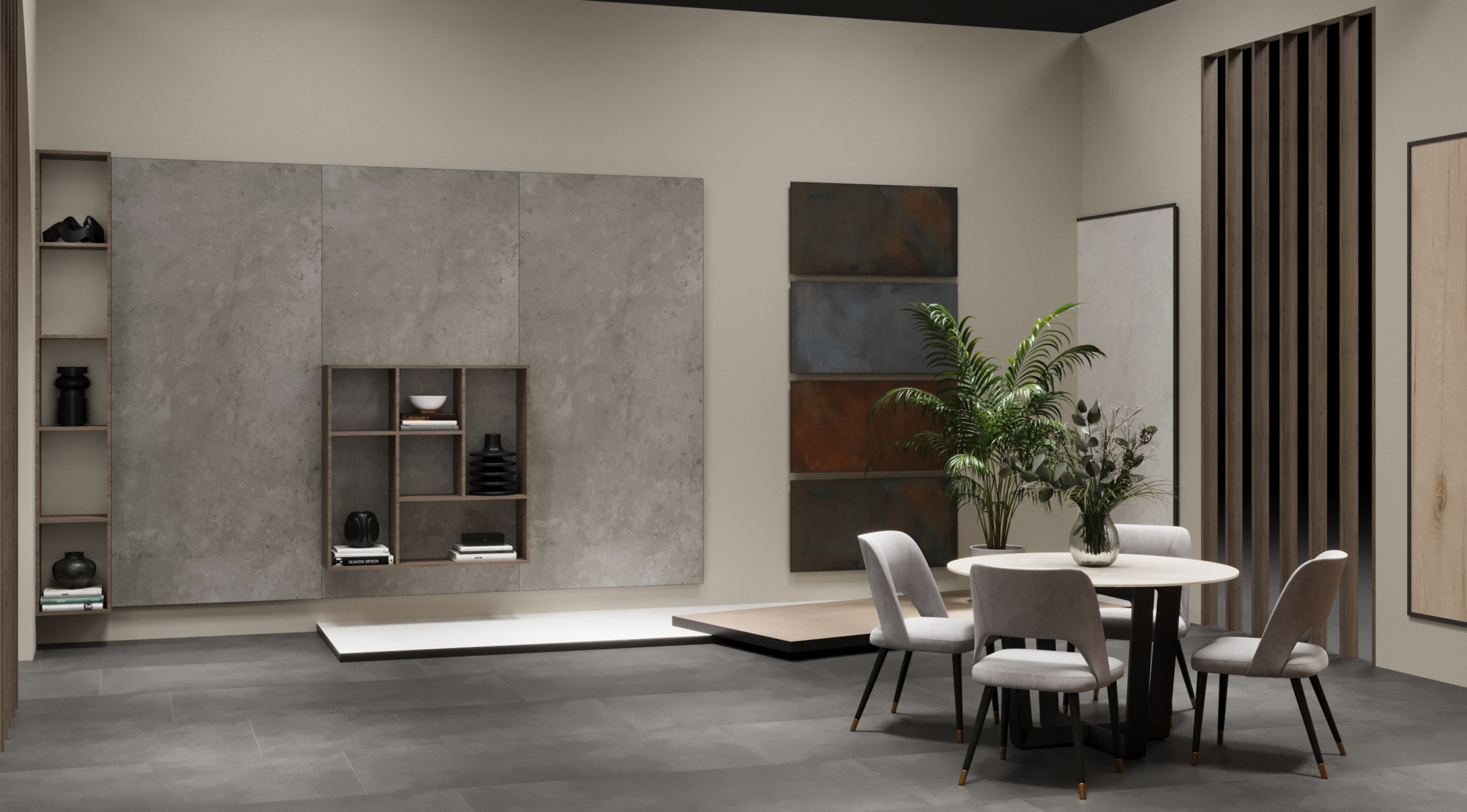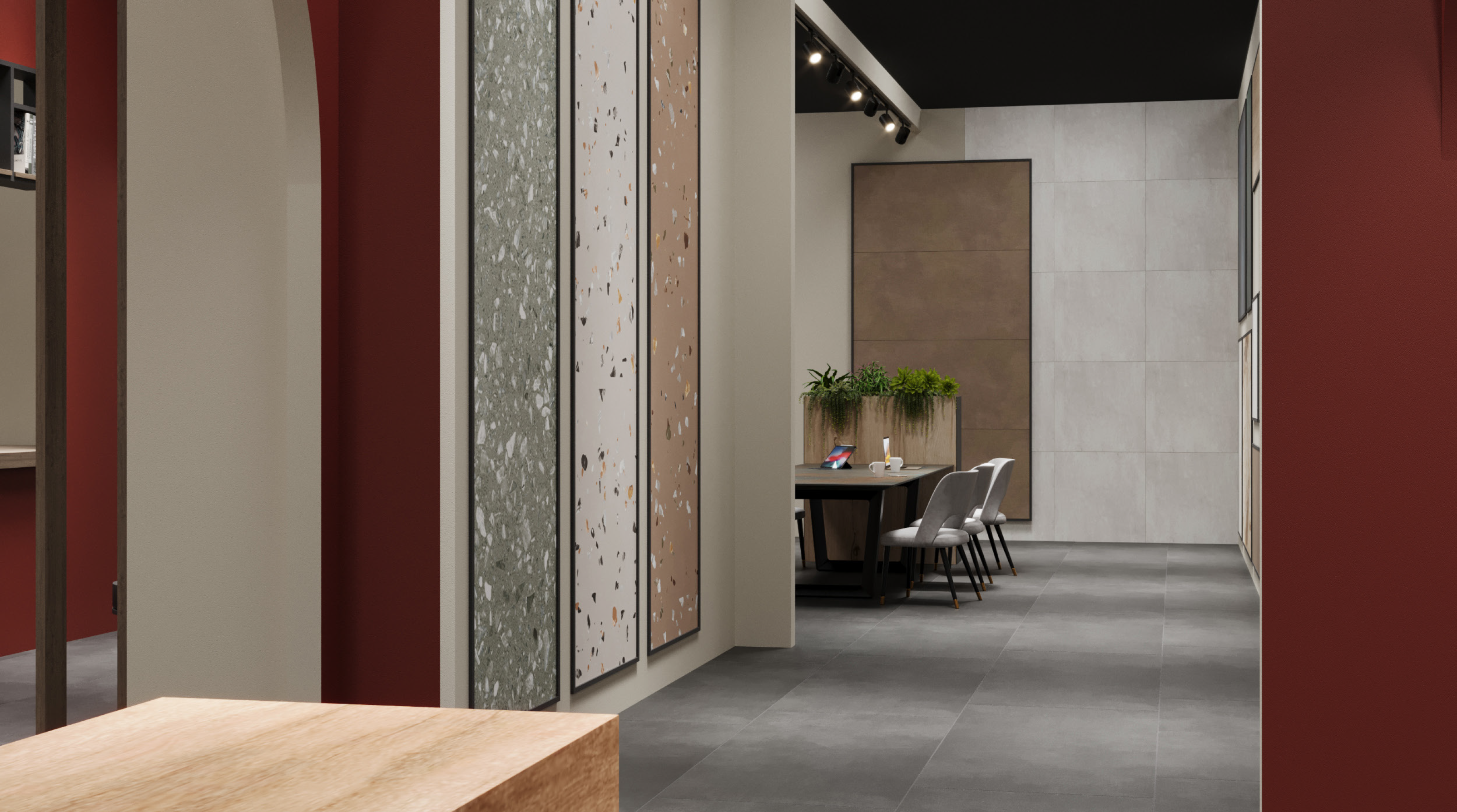 Un stand llamativo y elegante en el que la cerámica es el elemento más destacado. Sus líneas de producto incluyen baldosas para suelos, paredes y espacios exteriores, así como colecciones especiales para uso comercial e industrial.