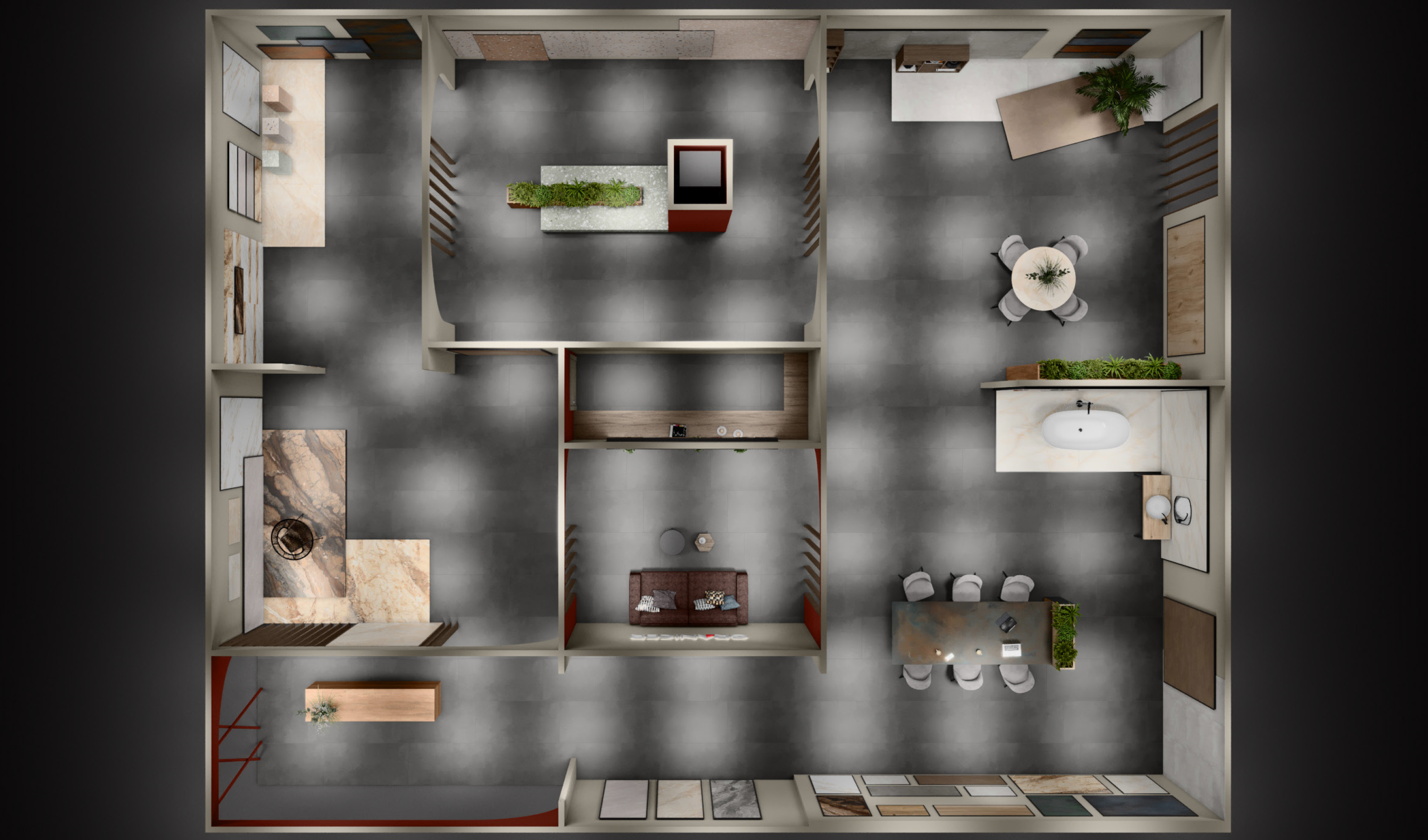 Para reflejar el compromiso de Granicer con la sostenibilidad y la responsabilidad medioambiental empleamos el uso de plantas para ayudar a mejorar la calidad del aire del espacio produciendo oxígeno y eliminando las toxinas nocivas del aire.